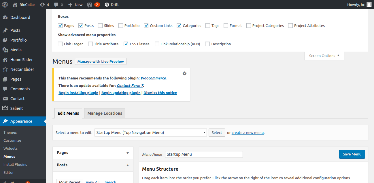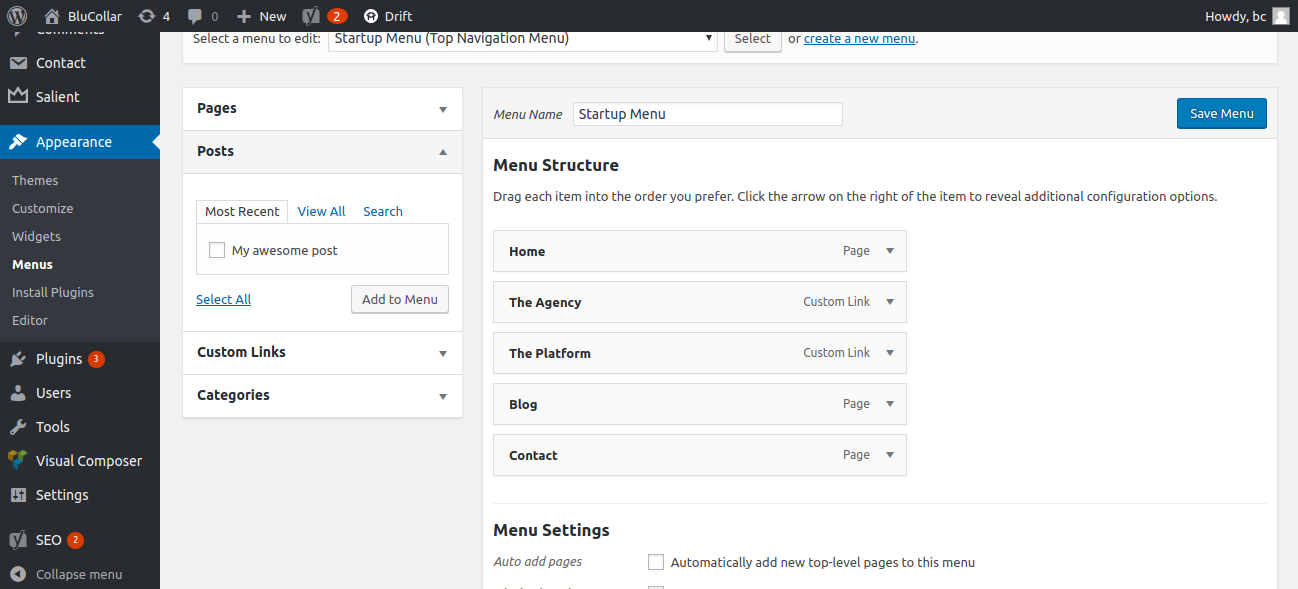 Then scroll down to your menu section and click on the posts to add your entries into the menu.