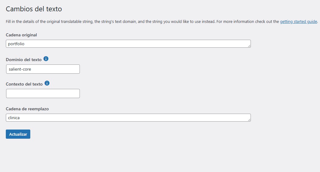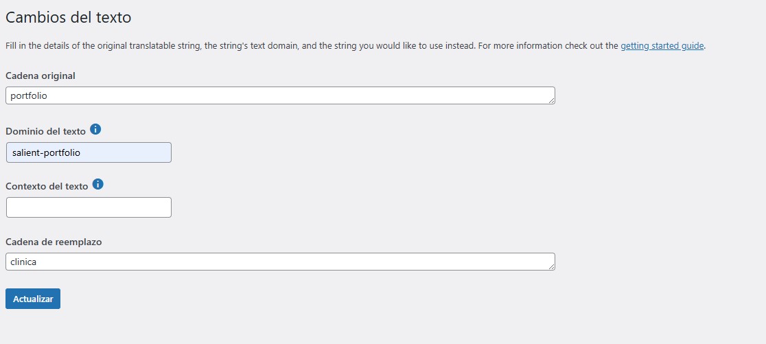 Estoy intentando cambiar texto /portfolio/ por otra palabra, seguí guia con plugin "Say What" y nada, también intenté con "Loco Translate", tampoco fue exitoso