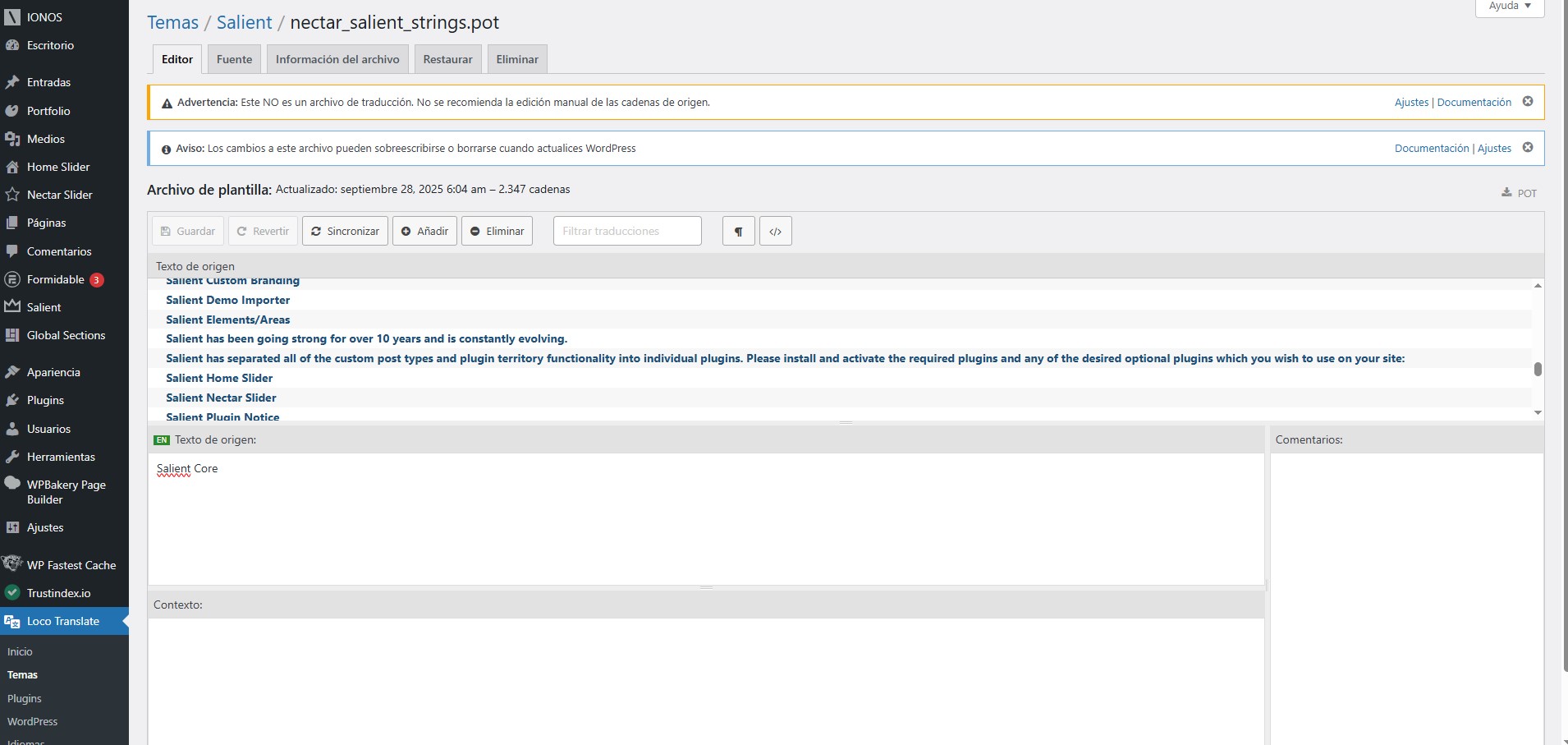 The term "clinica" seems like a text domain for the salient theme itself thus belongs to the Salient Core plugin therefore using "salient-core" and not "salient-portfolio".