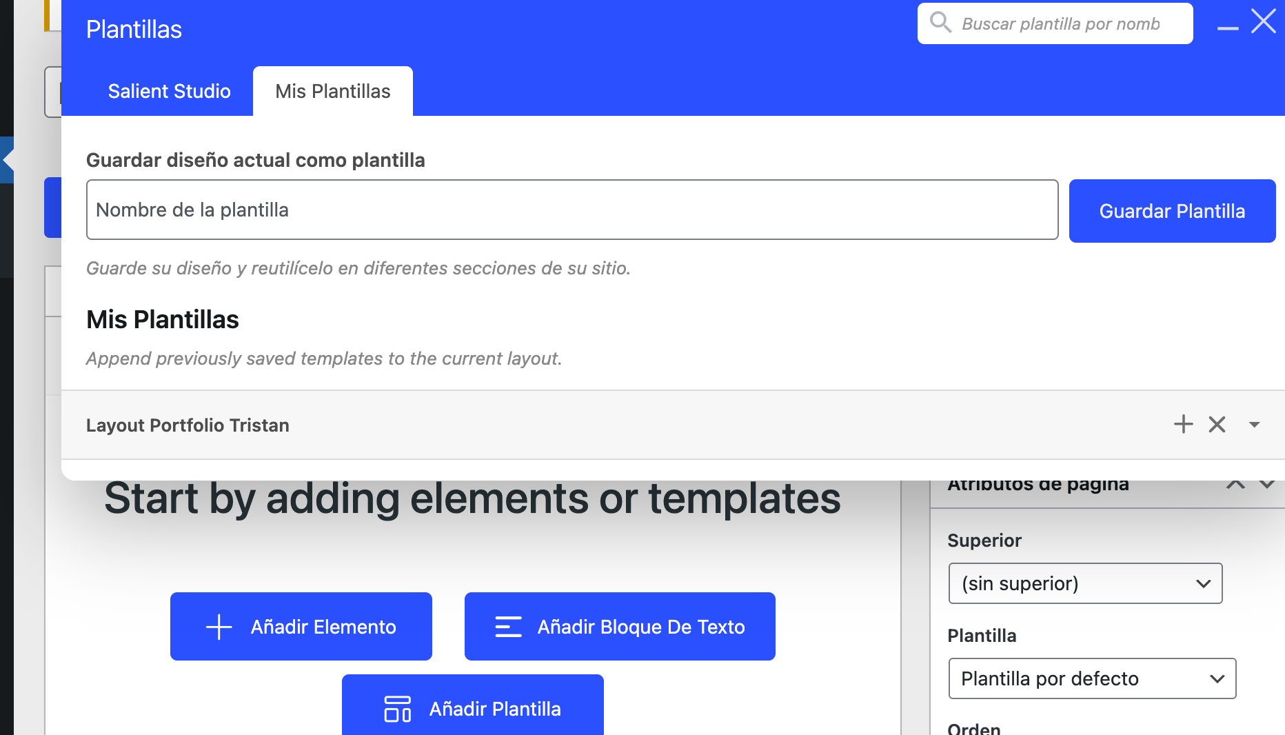 How to Change "My Templates"Load the Template: Create a new, blank test page and click the Templates button. Click the "+" (plus) icon on your saved template (like "Layout Portfolio Tristan") to drop it onto the page.